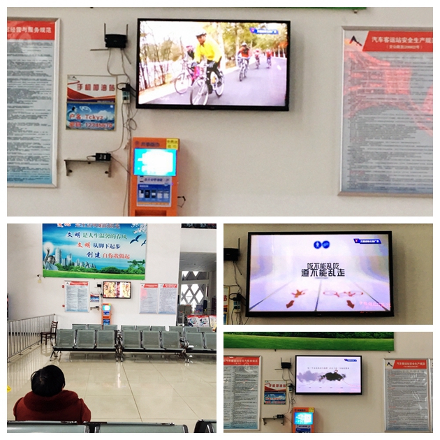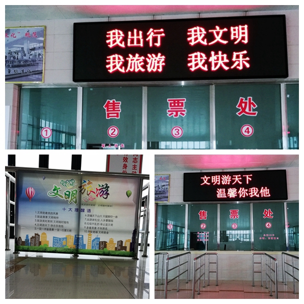 利用中心站售票廳、候車(chē)廳電子顯示屏滾動(dòng)播放文明交通文明出行宣傳標(biāo)語(yǔ),利于候車(chē)廳的LED屏循環(huán)播放在交通運(yùn)輸部政府網(wǎng)站交通運(yùn)輸公益廣告專(zhuān)題下載的《文明出行 和諧交通》、《綠色文明出行宣傳短片系列》等公益廣告。