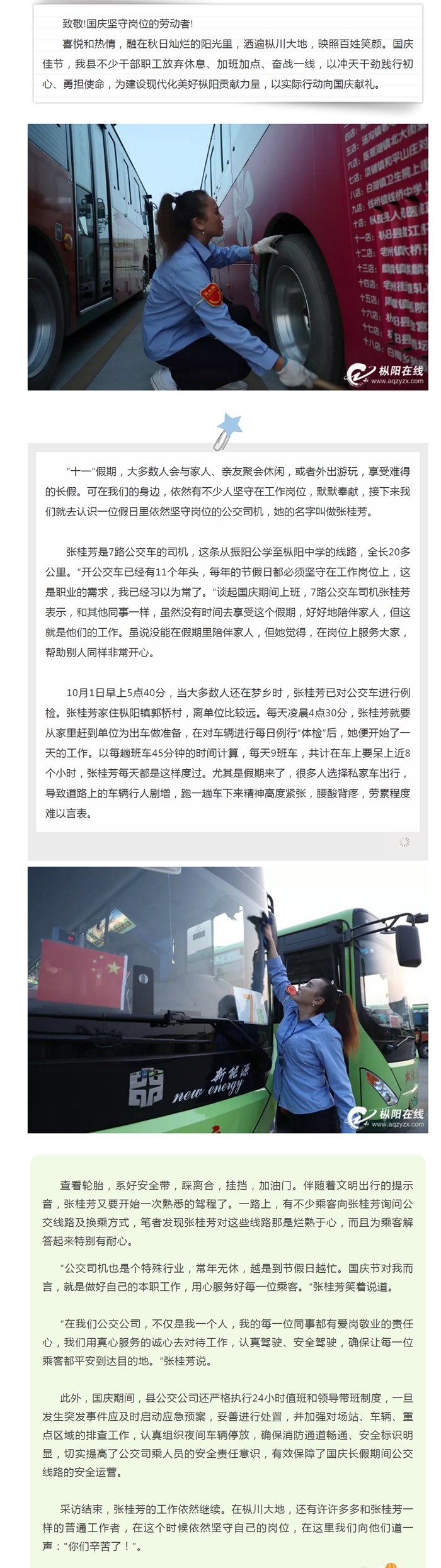 國慶我在崗 | 樅陽公交司機(jī)張桂芳:方向盤上過假期