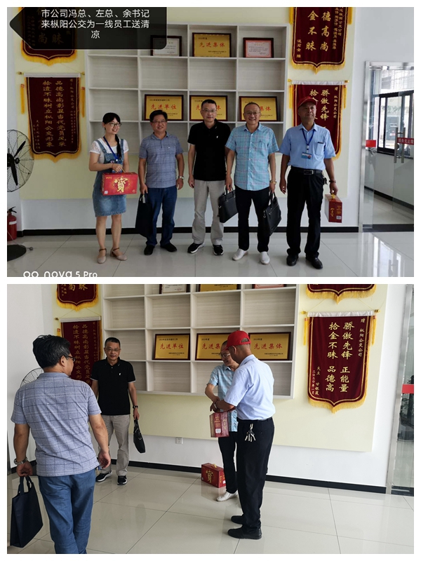 公司領導為堅守在一線的工作人員和駕駛員送上了清涼油、人丹、加多寶、毛巾等清涼物品,向一他們表示感謝和關懷,并細心查看了工作環(huán)境,詢問一線工作人員的作息時間和工作狀況,特別對在高溫下堅守崗位、辛苦工作的駕駛員表示高度關心。同時,叮囑分公司負責人要切實關心、愛護好堅守在高溫第一線的員工,堅持科學合理調(diào)度,做到及時調(diào)整、合理休息,避免駕駛員疲勞駕駛、高溫中暑,結(jié)合實際做好防暑降溫后勤保障工作,確保一線員工身體健康及運營安全,保障市民安全便捷出行。