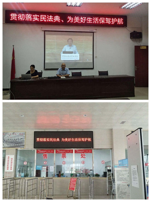 7月13日,根據(jù)上級關(guān)于積極開展民法典宣傳通知的要求,懷寧分公司第一時間在城南汽車站候車室電子顯示屏滾動播放民法典宣傳標(biāo)語,在廣大人民群眾中營造學(xué)法、懂法、知法、用法的濃郁氛圍。