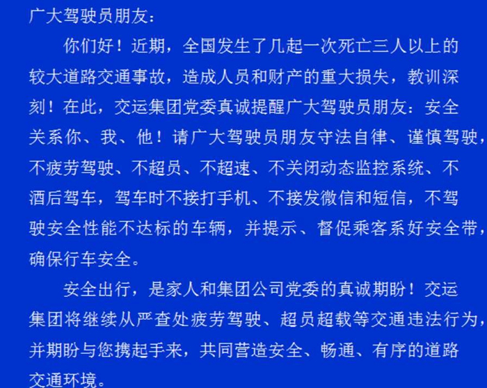 致交運(yùn)集團(tuán)廣大駕駛員朋友一封信