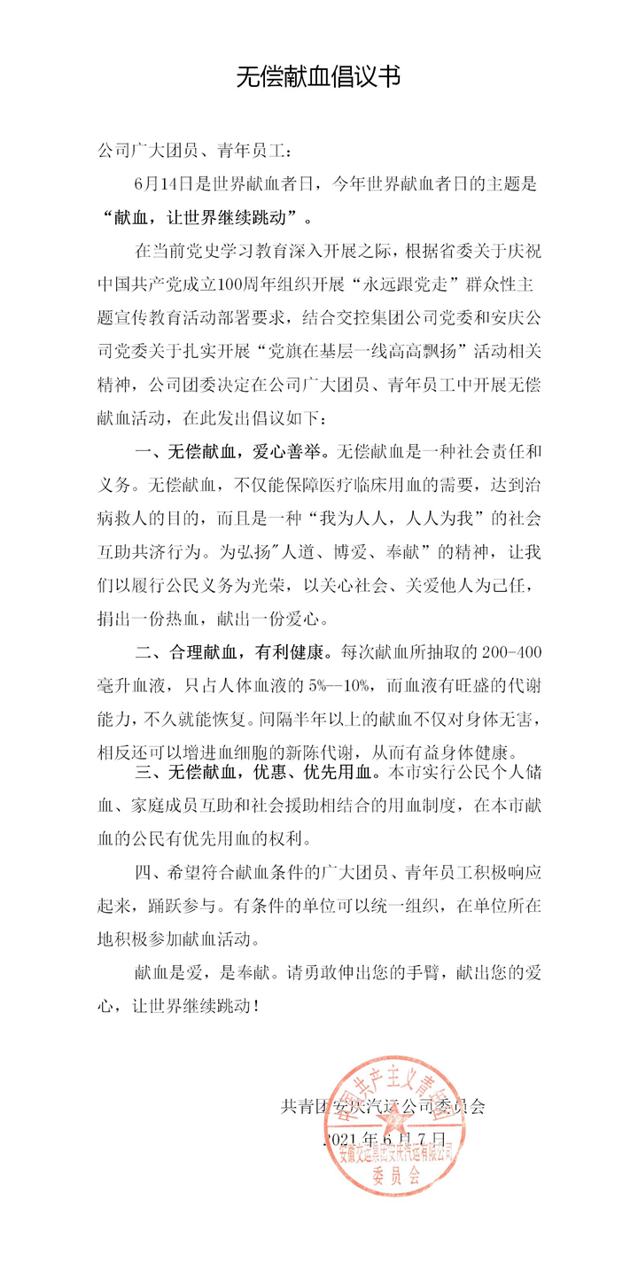 無償獻(xiàn)血倡議書