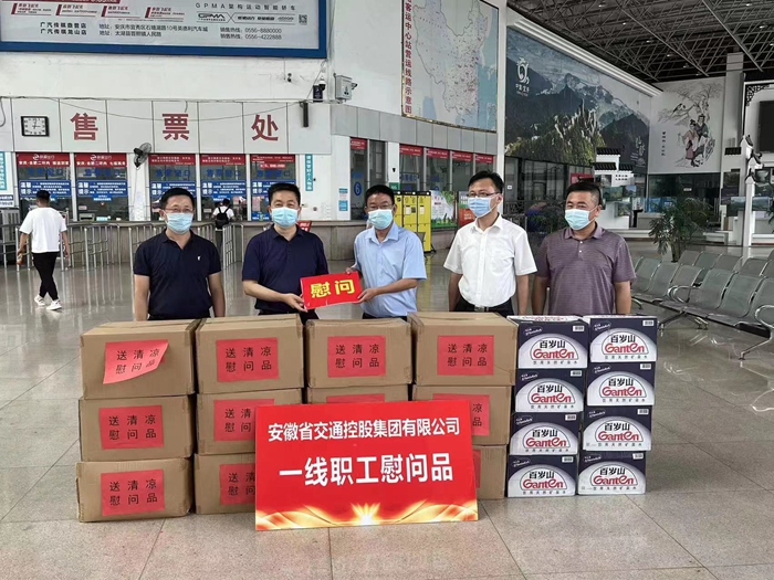 炎炎夏日,酷暑難當(dāng)。7月20日下午,省交控集團(tuán)黨委委員、紀(jì)委書(shū)記、監(jiān)察專(zhuān)員魏發(fā)斌,紀(jì)委副書(shū)記、監(jiān)察室主任程光遠(yuǎn)在省交運(yùn)集團(tuán)領(lǐng)導(dǎo)楊紅兵、許占礦,安慶汽運(yùn)公司領(lǐng)導(dǎo)王中明、蔡烈焰的陪同下來(lái)到安慶公路客運(yùn)中心站,看望慰問(wèn)奮戰(zhàn)在高溫酷暑中的一線(xiàn)工作人員,并為他們送去飲料、礦泉水等防暑降溫慰問(wèn)品。